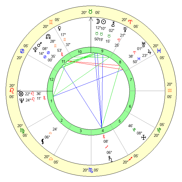 | Moon | 12 Taurus 52 | 5 Cancer 46 | 6 Sagittarius 0 |