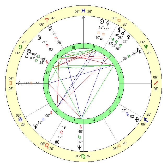 | Sun | 15 Aquarius 10 | 16 Aquarius 8 | 19 Taurus 18 |