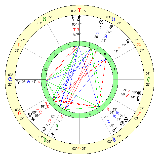 | Moon | 27 Leo 56 | 3 Taurus 48 | 27 Gemini 12 |