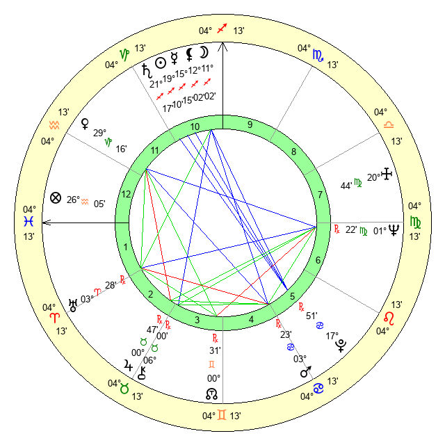 | Neptune | 1 Virgo 23 | 27 Pisces 7 | 29 Leo 18 |