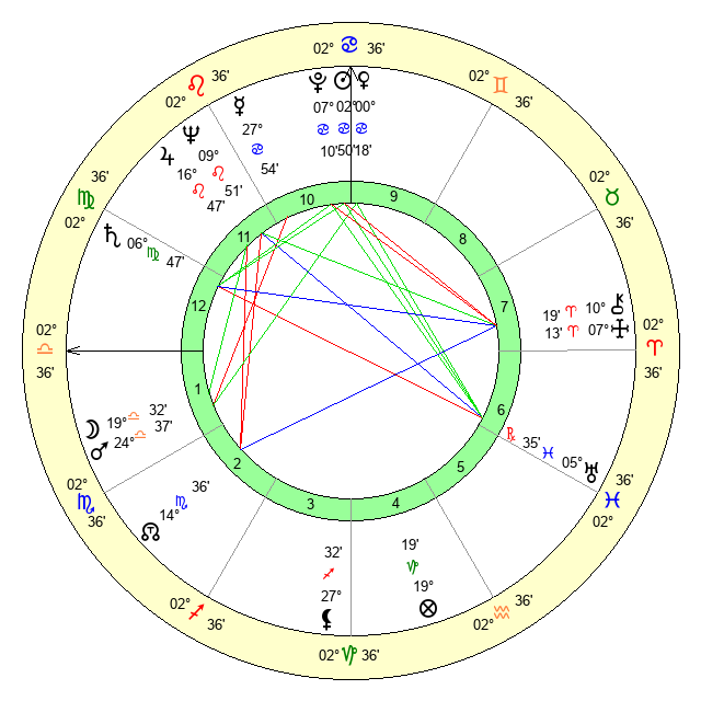 | Saturn | 7 Virgo 27 | 1 Aries 32 | 19 Virgo 18 |