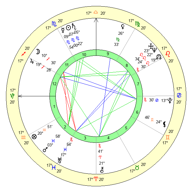 | Saturn | 5 Scorpio 54 | 25 Pisces 45 | 14 Scorpio 42 |