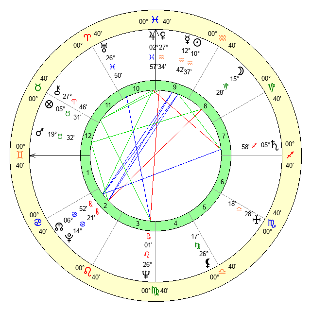 | Jupiter | 2 Pisces 54 | 11 Gemini 18 | 25 Pisces 19 |
