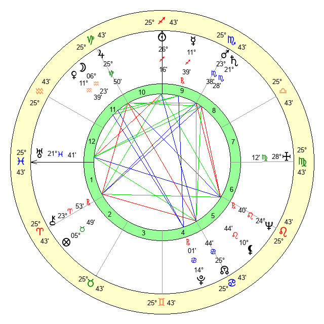 | Saturn | 21 Scorpio 56 | 25 Pisces 26 | 26 Scorpio 10 |