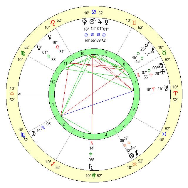 | Venus | 19 Leo 31 | 1 Gemini 10 | 27 Scorpio 44 |