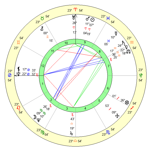 | Mars | 11 Aries 4 | 22 Cancer 34 | 17 Gemini 34 |