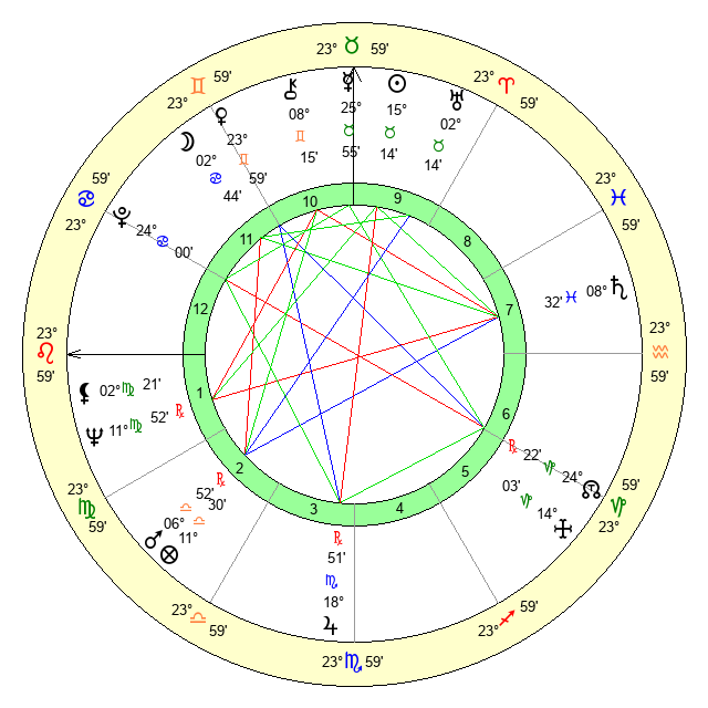 | Mars | 6 Libra 51 | 8 Leo 16 | 3 Scorpio 17 |