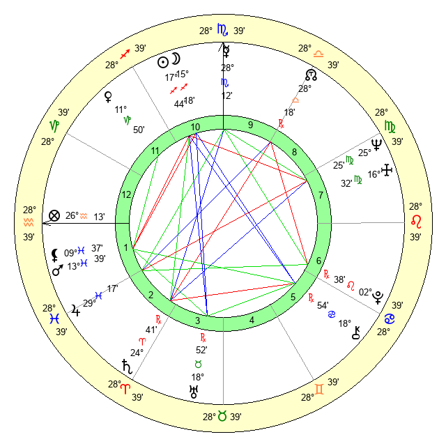 | Moon | 15 Sagittarius 16 | 5 Virgo 12 | 7 Aquarius 54 |