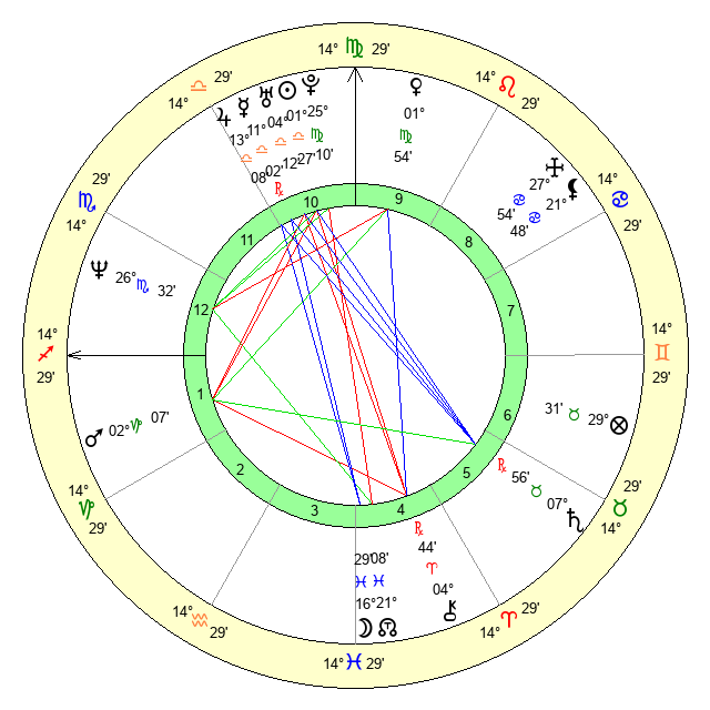 | Venus | 1 Virgo 54 | 6 Virgo 20 | 11 Scorpio 17 |