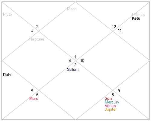 | Rahu | 7 Virgo 8 | 14 Pisces 18 | 1 Virgo 44 |