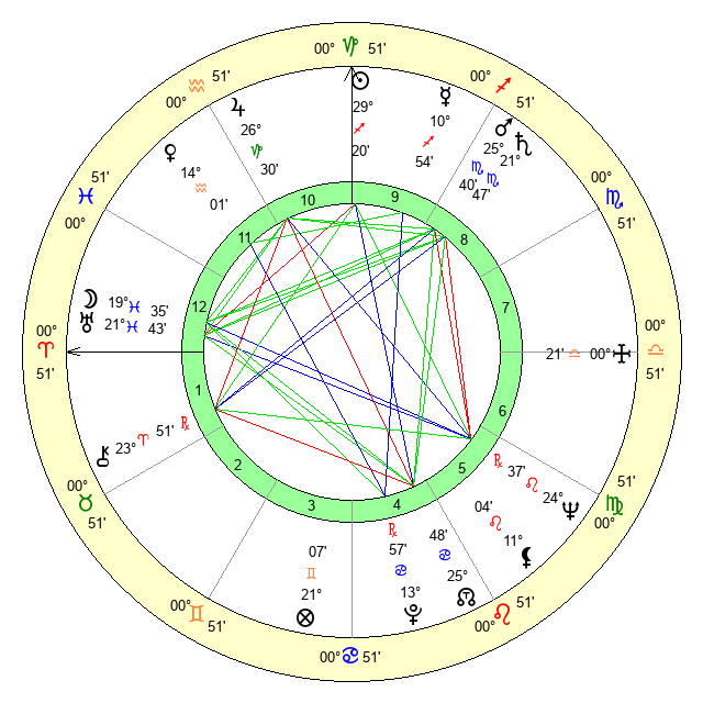 | Saturn | 22 Scorpio 15 | 13 Pisces 45 | 26 Scorpio 5 |