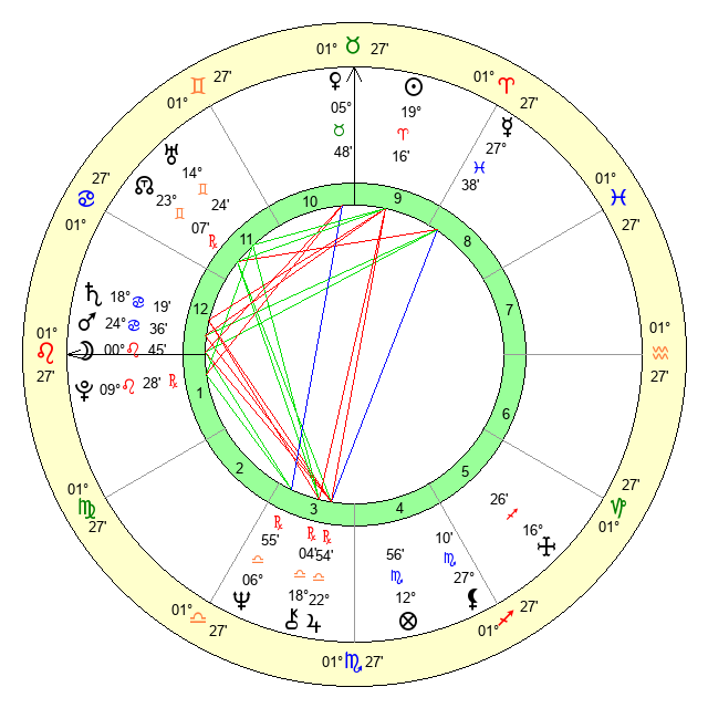 Pluto | 9 Leo 27 | 3 Aquarius 40 | 10 Leo 20 |