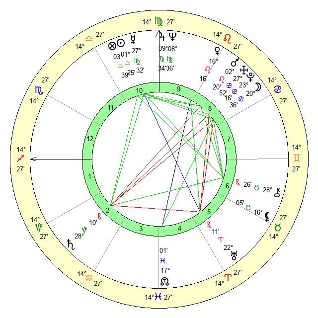 | Mars | 2 Leo 20 | 1 Scorpio 36 | 16 Virgo 43 |