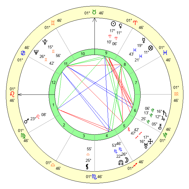 | Sun | 17 Aries 10 | 18 Aries 7 | 16 Leo 22 |