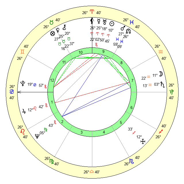 | Venus | 25 Taurus 23 | 27 Pisces 41 | 5 Cancer 2 |