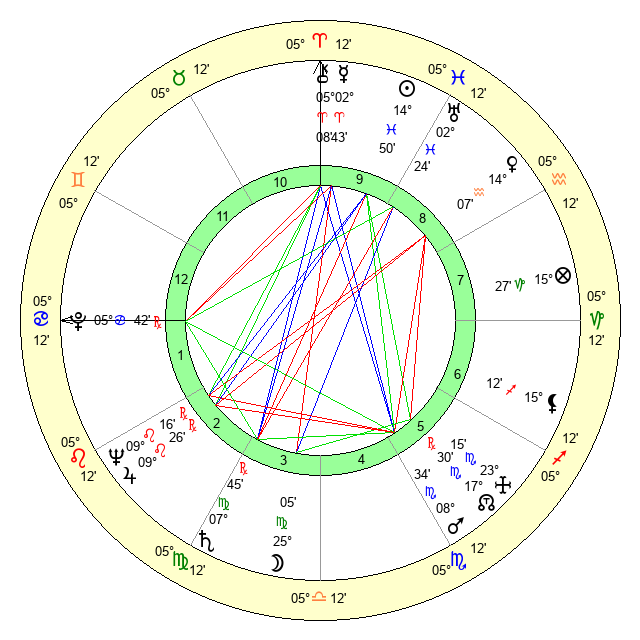| Moon | 25 Virgo 3 | 2 Gemini 39 | 27 Cancer 31 |