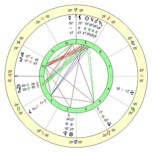 | Moon | 11 Aries 45 | 27 Aries 1 | 15 Libra 8 |