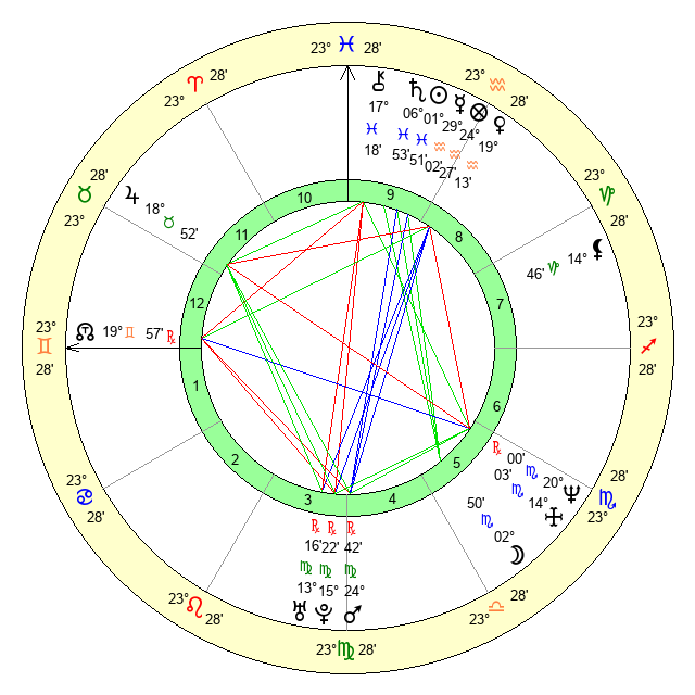 | Neptune | 20 Scorpio 0 | 28 Pisces 35 | 19 Scorpio 6 |