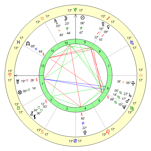 | Neptune | 10 Virgo 6 | 27 Pisces 15 | 8 Virgo 0 |