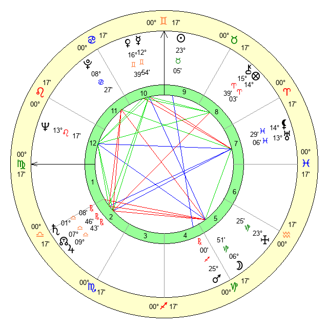| Jupiter | 9 Libra 25 | 24 Gemini 13 | 16 Libra 59 |