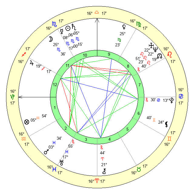 | Moon | 25 Scorpio 25 | 6 Aquarius 51 | 5 Leo 8 |