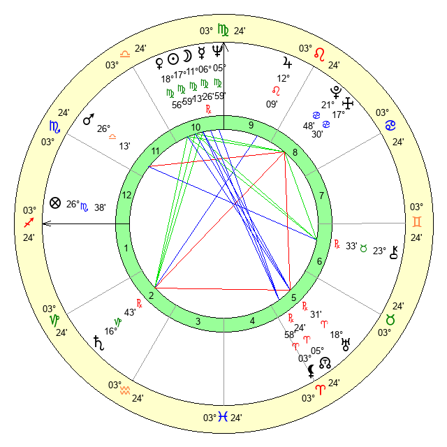 | Mercury | 6 Virgo 26 | 17 Virgo 38 | 5 Capricorn 39 |