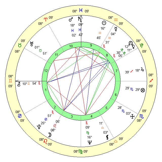 | Moon | 7 Leo 59 | 6 Gemini 0 | 4 Scorpio 52 |