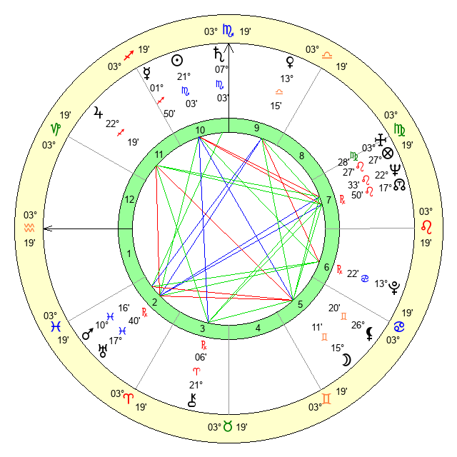 | Moon | 15 Gemini 13 | 9 Virgo 1 | 28 Aquarius 31 |