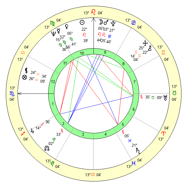 | Mercury | 12 Virgo 56 | 5 Leo 23 | 16 Scorpio 45 |