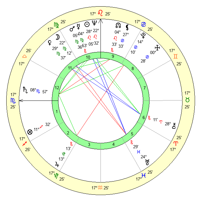| Venus | 29 Virgo 38 | 25 Cancer 16 | 24 Capricorn 11 |