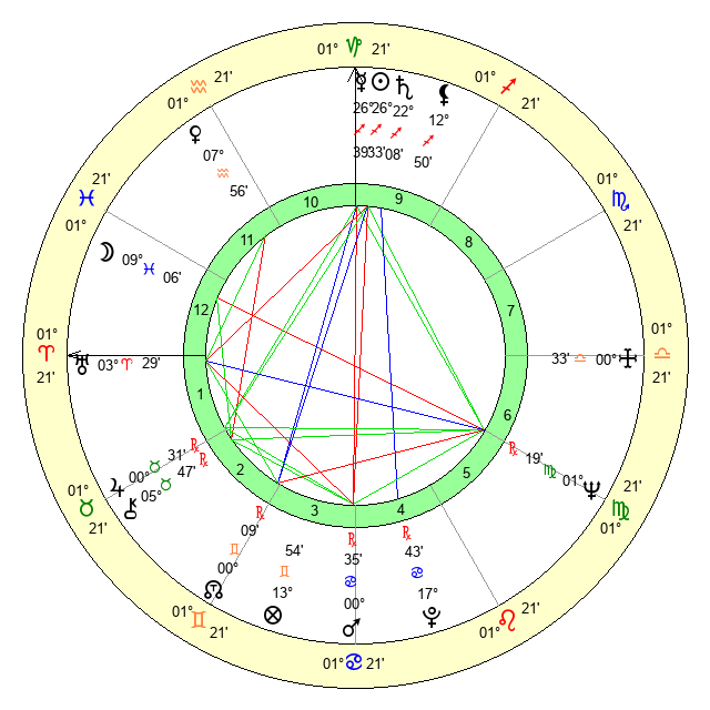 | Neptune | 1 Virgo 20 | 27 Pisces 9 | 29 Leo 8 |