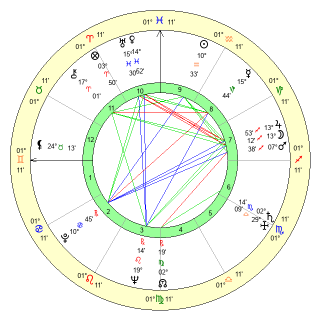 | Saturn | 2 Scorpio 50 | 17 Pisces 19 | 28 Libra 2 |