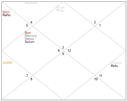 | Rahu | 9 Virgo 47 | 16 Pisces 56 | 4 Virgo 23 |
