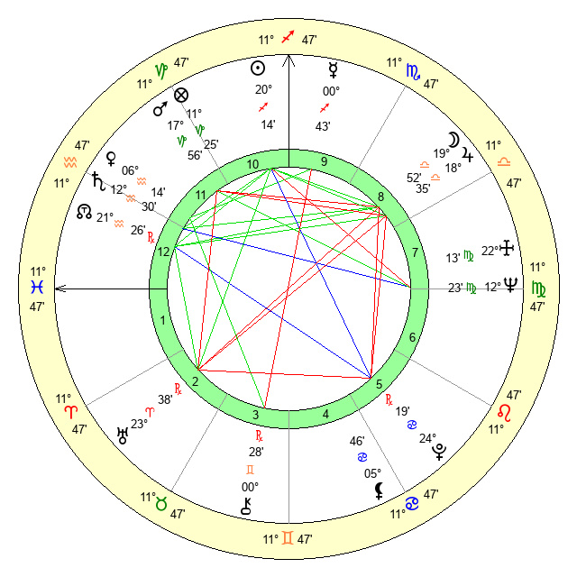 | Pluto | 24 Cancer 18 | 2 Aquarius 10 | 22 Cancer 37 |