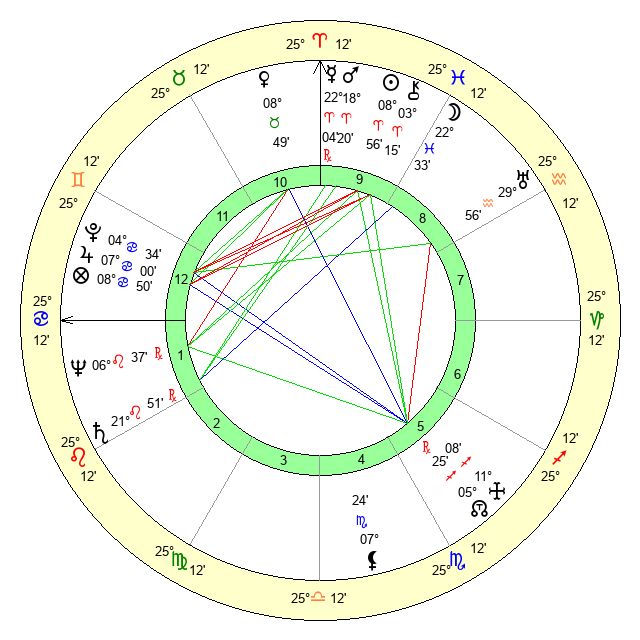 | Sun | 8 Aries 56 | 10 Aries 14 | 21 Cancer 11 |