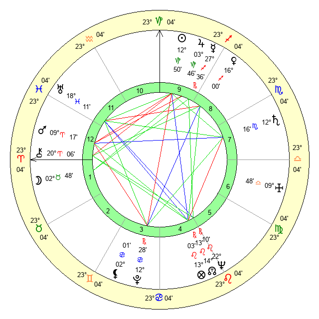| Mars | 9 Aries 18 | 1 Leo 0 | 13 Gemini 16 |