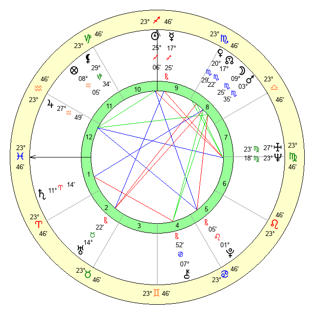 | Neptune | 23 Virgo 19 | 29 Pisces 22 | 21 Virgo 55 |