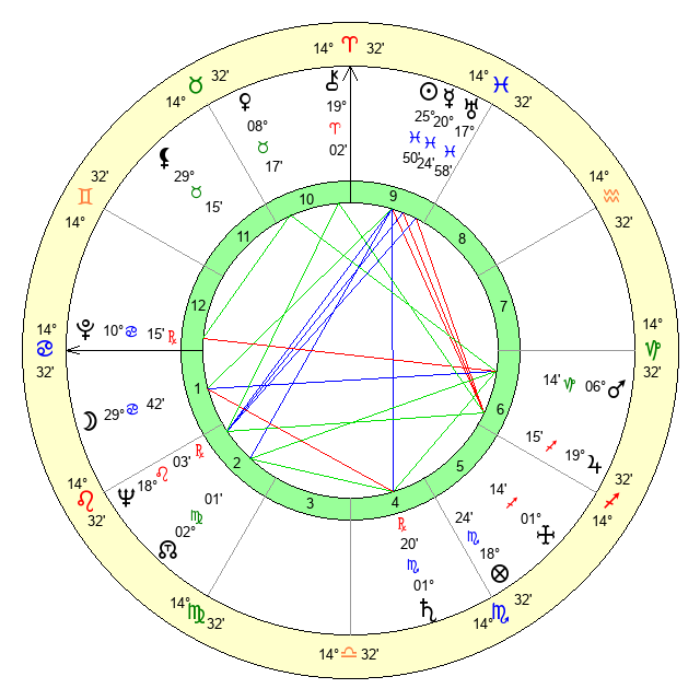 | Moon | 29 Cancer 39 | 22 Libra 44 | 22 Aries 13 |