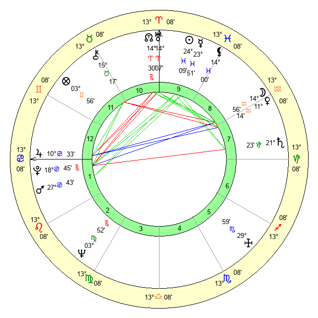 | Mars | 27 Cancer 44 | 19 Cancer 11 | 3 Virgo 49 |