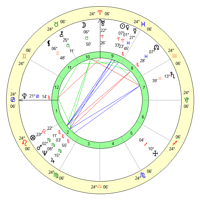 | Sun | 7 Aries 34 | 8 Aries 16 | 6 Cancer 31 |