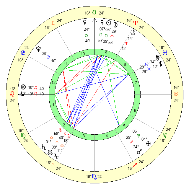 | Venus | 24 Taurus 41 | 27 Pisces 58 | 26 Virgo 59 |