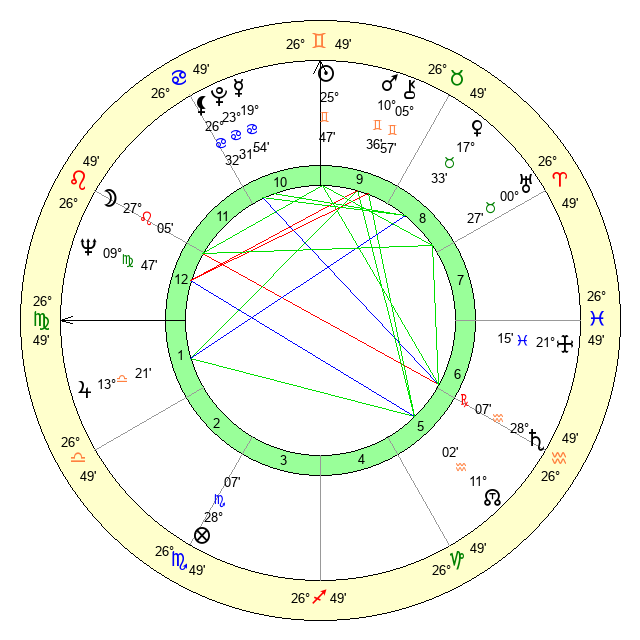 | Sun | 25 Gemini 47 | 26 Gemini 45 | 23 Virgo 7 |