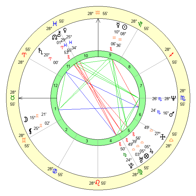 | Jupiter | 5 Libra 49 | 11 Gemini 21 | 0 Libra 31 |