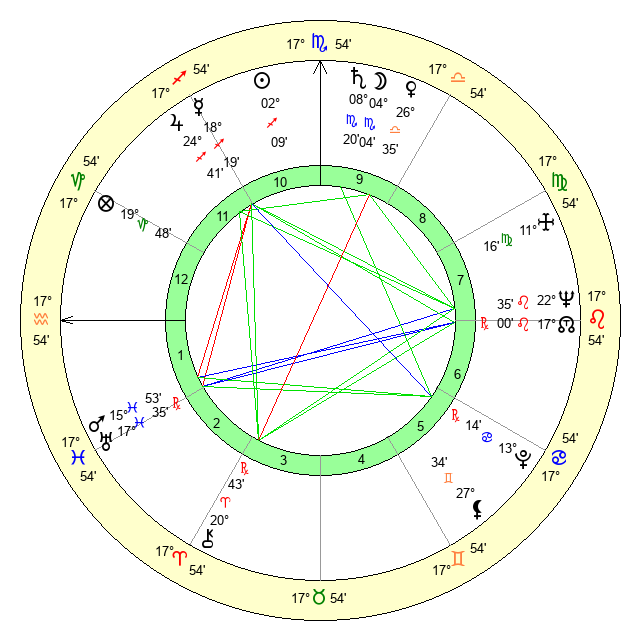 | Moon | 4 Scorpio 3 | 21 Capricorn 15 | 19 Cancer 22 |