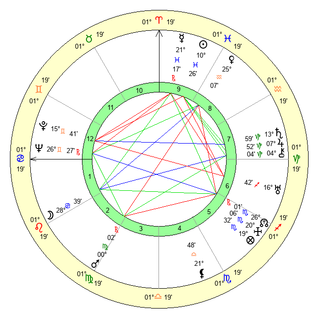 | Mars | 0 Virgo 1 | 17 Cancer 13 | 24 Virgo 22 |