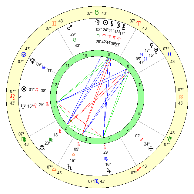 | Sun | 24 Aries 42 | 25 Aries 58 | 2 Leo 40 |