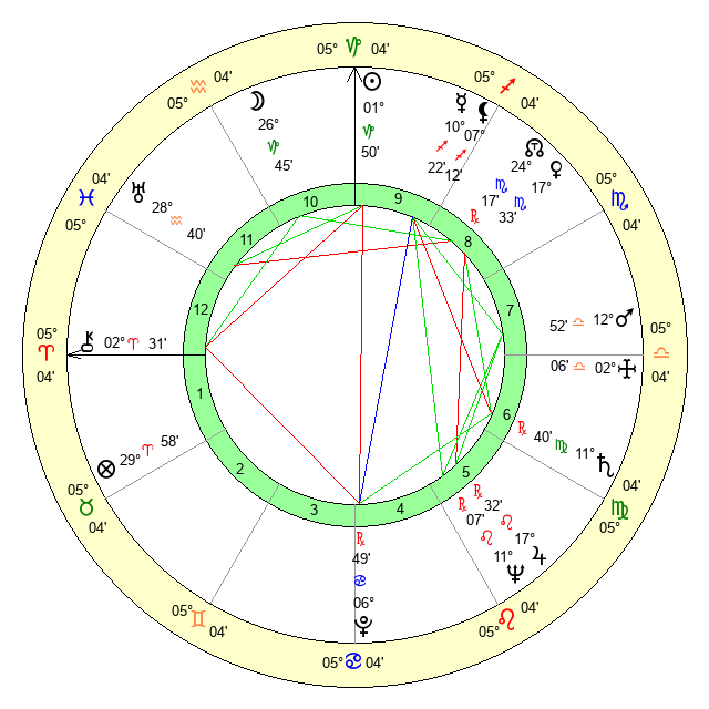 | Saturn | 12 Virgo 24 | 25 Pisces 41 | 6 Virgo 15 |