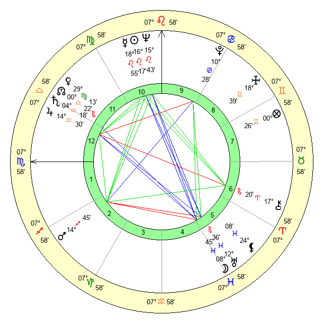 | Venus | 29 Virgo 14 | 11 Cancer 6 | 4 Sagittarius 52 |