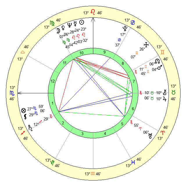 | Moon | 7 Virgo 44 | 0 Gemini 28 | 12 Pisces 54 |