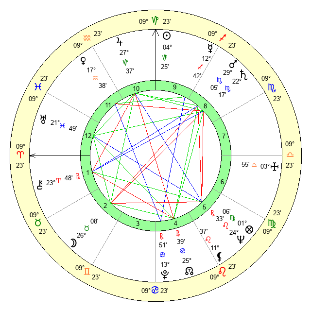| Saturn | 22 Scorpio 45 | 14 Pisces 5 | 25 Scorpio 53 |